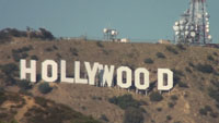 用英文字母书写的好莱坞几个字牌设立在山坡上,这几个字的高度达13.7米,成为洛杉矶有名的建筑物,经常可以在电影电视上看到它的身影。原来这是为发展好莱坞地区而修建的。1960年,当 Hollywood Land变为Hollywood时,这个标志就成了好莱坞的象征物.不得不提的是,1932年一个新女演员因经受不起失败的打击,曾在这个标志的“D”字上坠崖自杀。现在禁止接近这个标志,你只能在天文台上通过望远镜进行摄影。