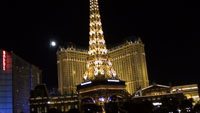 夜晚的拉斯维加斯灯火如织,将地面妆点得比星空更輝煌.我们参观了威尼斯广场,那里有音乐喷泉表演,还参观了欢乐宫,特别是里边的人造天空,迷惑了不少参观者。