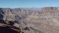 从拉斯维加斯驱车大峡谷需三个多小时。中途要换乘专用大巴。沿途为一望无际的沙漠。说是沙漠实际上是无边无际的砂砾,而不是真正的黄沙。一些耐旱的杂草,其中最多、最抢眼的是祈祷树,它高矮不一,高的达数米,矮的仅尺把,枝干上长满了刺,其形状颇似针叶松的叶子。它是人们从拉斯唯加斯到大峡谷途中,所能见得到的最为显眼的耐旱树种 大峡谷位于美国亚利桑那州西北部的凯巴布高原上,是地球上最为壮丽的景色之一,科罗拉多河在高原上共切割出19条主要峡谷,总面积2724.7平方公里,其中最深、最宽、最长的一个就是科罗拉多大峡谷。它全长446公里,是世界上最长的峡谷之一。峡谷顶宽6至28公里,平均宽度16公里。最深处1800米。谷底水面不足 1000米宽,夏季冰雪融水,水深增至18米。山石多为红色。它是联合国教科文组织选为受保护的天然遗产之一 .